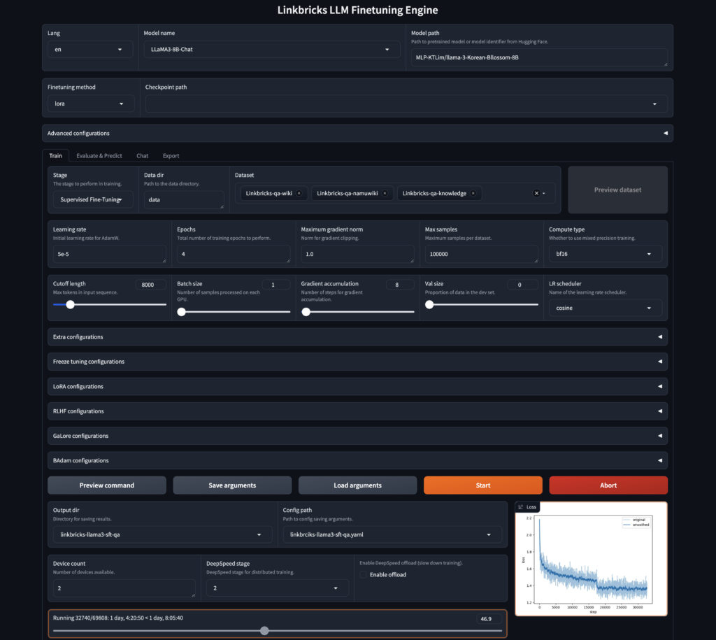 8B, 16B, 32B, 64B 매개변수 기반 sLLM 개발, 파인튜닝, sLLM서버, AI Workflow 기반 통합 풀스택 서비스 플랫폼 구축 및 서비스 On-Premise에서 부터 클라우드 버전까지 모두 보유 국방, 의료, 파이넨스, 번역 등 특화 sLLM 개발 및 서비스